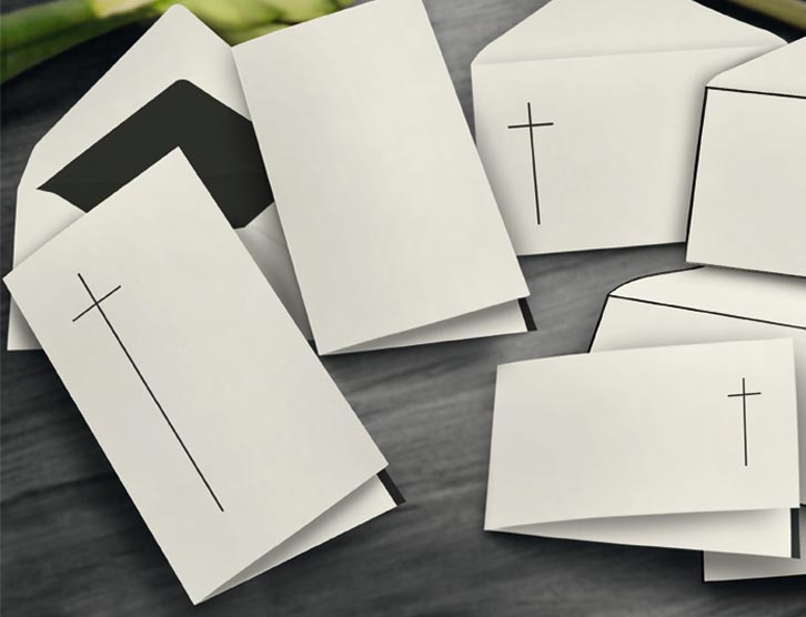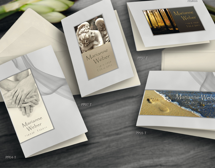 Auch wenn sich ein Trauerfall im Umfeld des Verstorbenen schnell herumspricht, muss die Todesnachricht doch auf die eine oder andere Weise auch schriftlich bekanntgemacht werden. Ob Traueranzeige in der örtlichen Zeitung, Einladung zur Trauerfeier oder Danksagungen. Wir beraten und unterstützen Sie bei der Gestaltung aller denkbaren Trauerdrucksachen, die in hochwertiger Form in unserem Hause zeitnah erstellt werden. Auf Wunsch kümmern wir uns um die Anzeigenschaltung und nach Bereitstellung der entsprechenden Adresse auch um den Postversand.